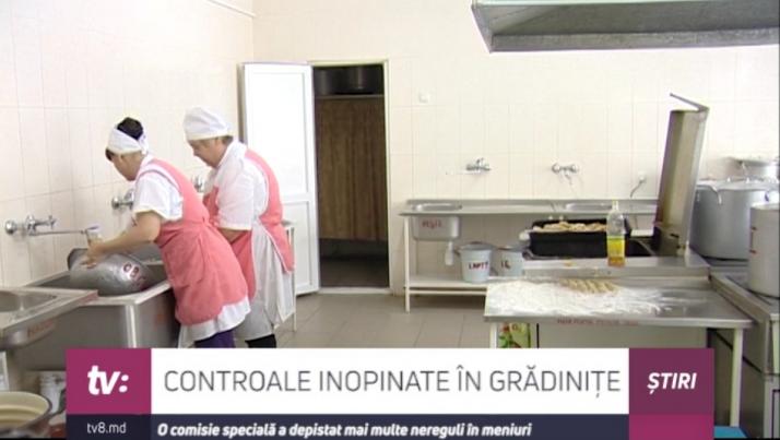 A urmat grădinița nr. 57, unde s-au depistat câteva nereguli, cum ar fi înlocuirea legumelor proaspete cu ghiveciul. Directoarea spune că nu reușește să țină sub control situația din bucătărie, în lipsa unei asistente medicale.