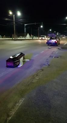 Într-un filmuleț postat pe rețele de socializare se poate observa cum dintr-o mașină a unei firme de pompe funebre din oraș cade pe asfalt un sicriu care are capacul pus și în care se afla o persoană decedată.