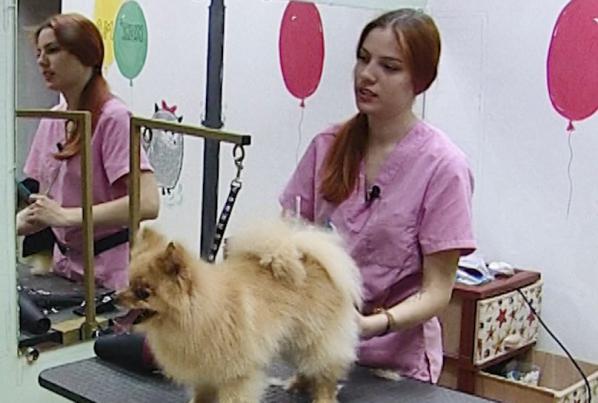 „Dacă stăpânii au ceva festivități, diferite nunți, cumătrii, zile de naștere și așa mai departe, noi îi aducem în ordine anume pentru ziua aceasta. Cercei la urechi, colorăm blana. Avem vopsea specială. Noi facem șuvițe roz și la stăpâni dacă doresc”, Anastasia Gadai, Groomer.