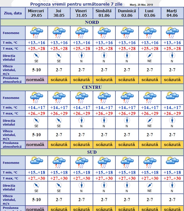Totuși, temperaturile se vom menține înalte. Maximele temperaturii aerului la amiază vor fi de +28 de grade la Nord, +29 de grade, în Centru și + 30 de grade la Sud.