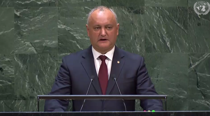Președintele Republicii Moldova, Igor Dodon, a ținut astăzi un discurs în cadrul dezbaterilor generale ale celei de-a 74-a sesiuni a Adunării Generale a Națiunilor Unite. Șeful statului a abordat mai multe subiecte precum: conflictul transnistrean, recunoașterea statului de neutralitate a R. Moldova, scindările din societate, obiectivele actualei guvernări și rolul femeii în stat în procesul decizional. Discursul pe scurt al șefului statului îl puteți citi mai jos.