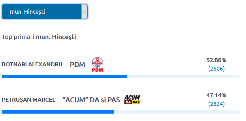 Deputatul fracțiunii Partidului Democrat, Alexandru Botnari, va reveni în fotoliul de primar al municipiului Hâncești. Acesta a fost desemnat câștigător al alegerilor locale din al doilea tur de scrutin, acumulând 52,86% din voturile alegătorilor.