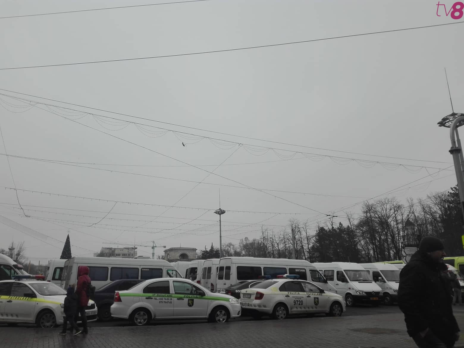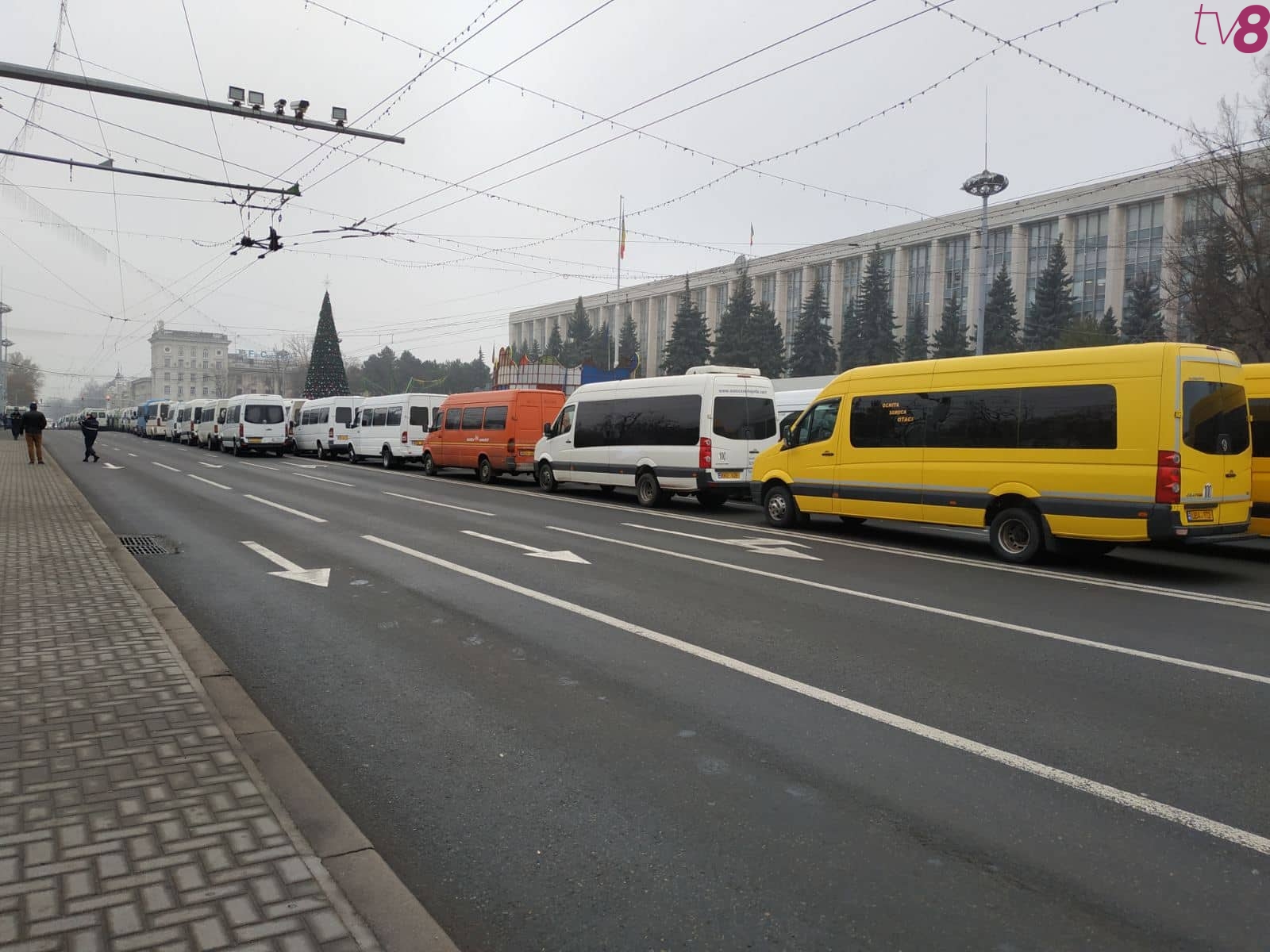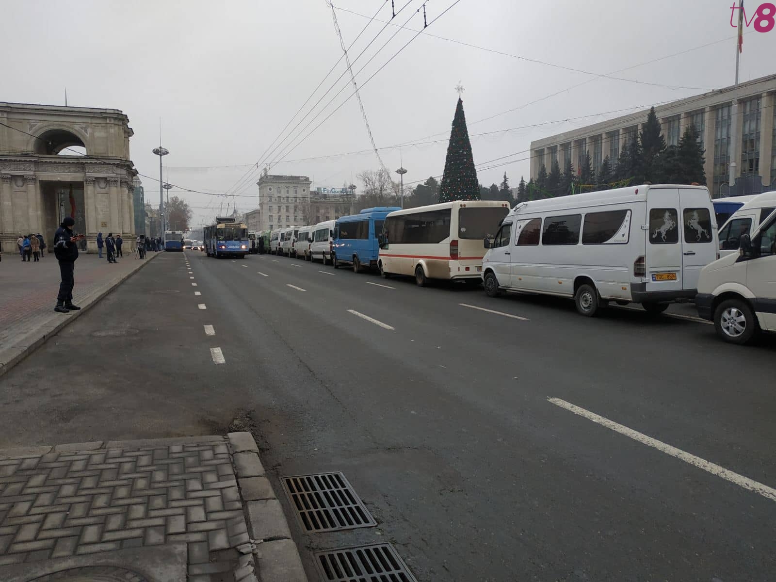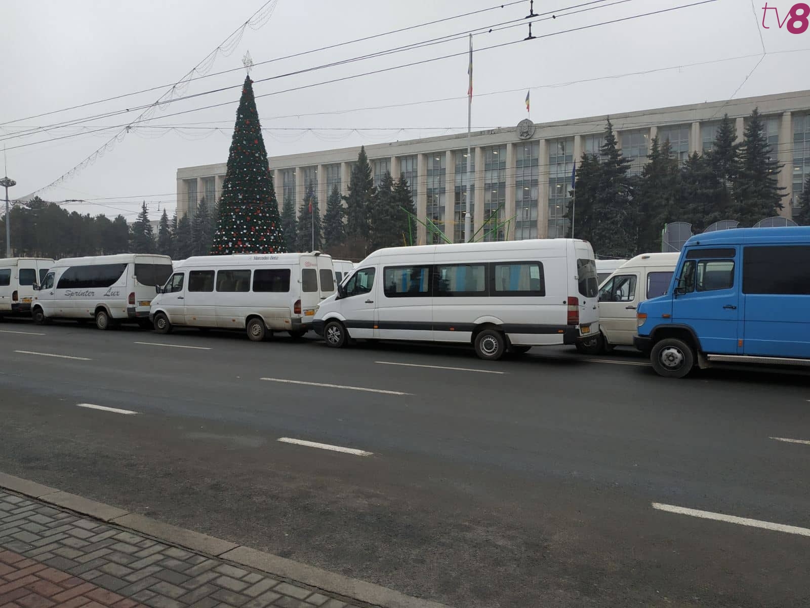 UPDATE: 11:43 A început protestul în Piața Marii Adunări Naționale. Mai mulți șoferi care transportă pasageri și-au parcat microbuzele în centrul capitalei. Astfel, au blocat parțial circulația prin zonă.
