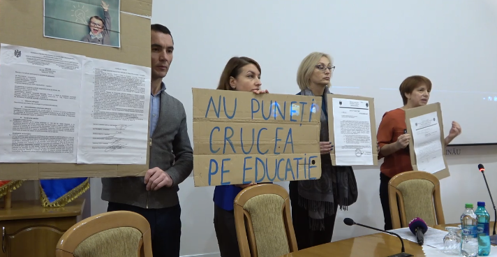 Aceștia au venit cu pancarte pe care au scris: „Nu puneți crucea pe educației”.