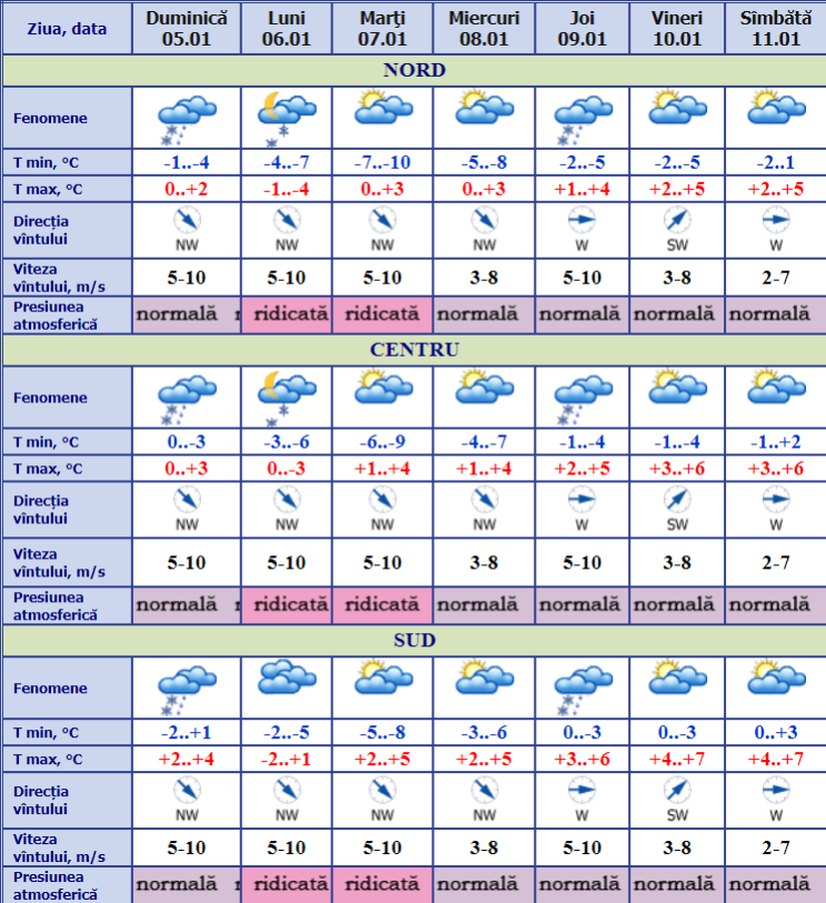 Meteorologii au prognozat pentru astăzi lapoviță în Chișinău și temperaturi maxime de +2°C, iar pentru luni se anunță ninsori slabe.
