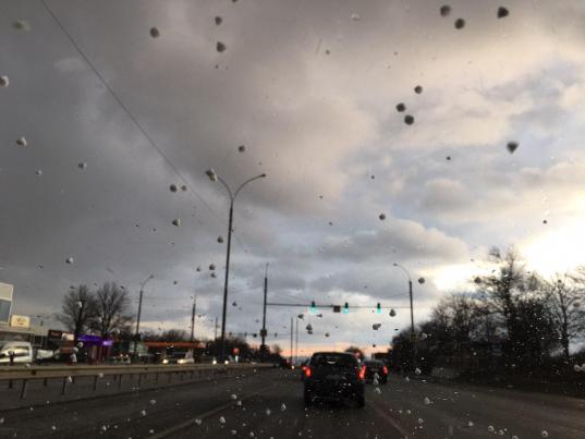 Șoferii aflați în trafic au filmat cum micile formațiuni de gheață lovesc în parbrizele mașinilor.