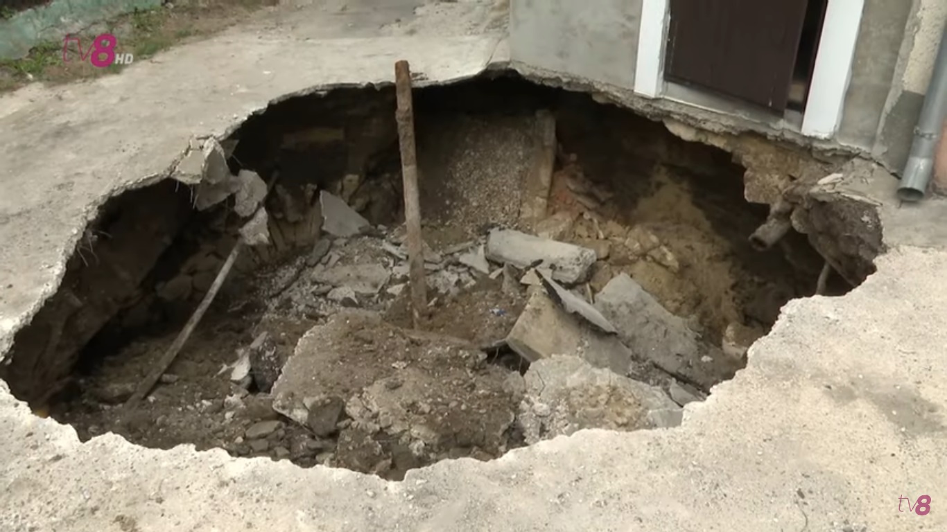 O familie din capitală s-a pomenit cu un crater imens chiar în fața ușii de la casă. Asfaltul s-a surpat după ce o țeavă s-a spart și s-a scurs apă timp de două zile. Muncitorii de la Apă Canal au venit să repare, dar unul dintre ei a căzut în groapă așa că au renunțat. Proprietarul casei spune că nu doar clădirea sa este în pericol, dar și vecinii, care atunci stau fără apă și canalizare.