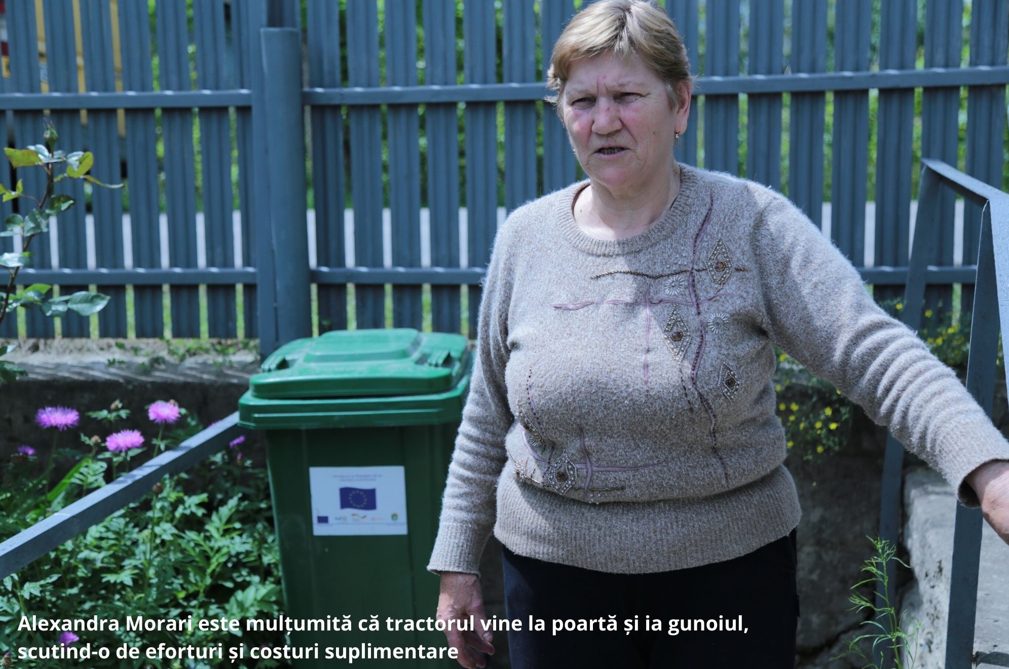 „Suntem foarte bucuroși că avem acest serviciu. Până acum adunam gunoiul undeva grămadă, chemam un tractor, găseam băieți să ne ajute la cărat. Acum, tractorul vine la poartă în fiecare săptămână și ia gunoiul. Nouă ne este convenabil, mai ales că suntem în vârstă și ne deplasăm mai greu”, argumentează și Alexandra Morari.