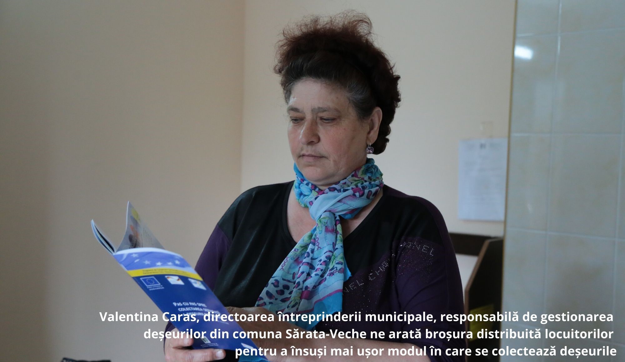 Valentina Caras, directoarea întreprinderii municipale, responsabilă de gestionarea deșeurilor din comuna Sărata-Veche, spune că procesul de instruire a populației a durat ceva timp. Este adevărat, nu toate gospodăriile au acceptat să beneficieze de acest serviciu, însă numărul acestora este foarte mic. „Acum 4 ani aveam100 de contracte în toată comuna, în care intră trei sate, acum avem 800 de contracte în comună, dintre care 600 doar în Sărata-Veche. A fost greu la început, dar acum oamenii s-au acomodat și au învățat ziua colectării – prima zi de marți din lună. Mai sunt cazuri când aruncă și alt fel de gunoi, dar mai rar deja și vedem cum crește cantitatea de plastic colectat. Pe lună adunăm câte 300-500 kg de plastic”, spune directoarea, care a mers din casă în casă pentru a le explica oamenilor importanța separării deșeurilor.
