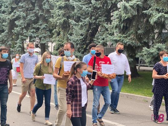 Tinerii au luat cu ei o boxă în care răsuna tradiționalul marș al nuntașilor, un colac mare și au încercat să intre în clădirea Guvernului, pentru a-i înmâna pâinea prim-ministrului. La ușă au fost întâmpinați însă de ofițerii de pază, care nu i-a lăsat să intre.