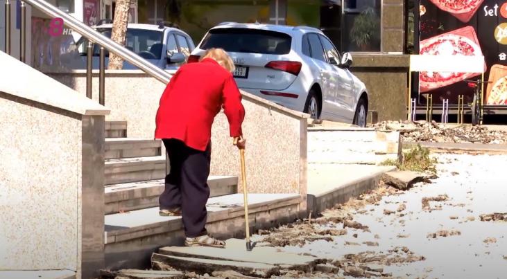 Mersul pe trotuarele în reparație este o provocare și pentru bătrâni.