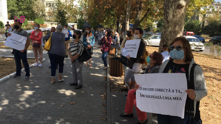 Oamenii au venit cu pancarte pe care scrie „Soarta mea e în mâna ta, domnule judecător”, „Escrocii la pușcărie” și „O decizie corectă a ta îmi salvează casa mea”.