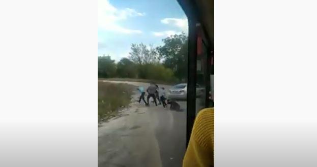 Un pasager a filmat conflictul cu telefonul. Din imagini se vede cum mai mulți bărbați și două femei care se iau la bătaie, iar la un moment dat una din ele cade la pământ. Între timp, bărbații s-au îmbrâncit până au ajuns într-un șanț de la marginea drumului.
