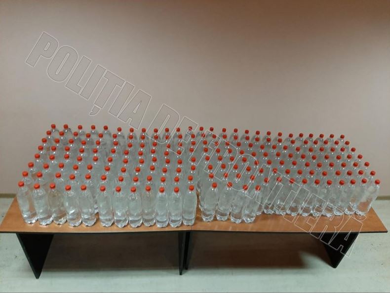 În urma verificării căruței. oamenii legii au depistat zece saci ticsiți ți cu butelii din plastic a câte 1,5 litri fiecare. De asemenea, au fost numărate 200 de recipiente pline cu lichid incolor, cu miros specific de alcool etilic.