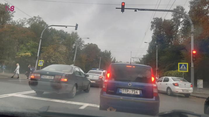 Mai mult, pe lângă faptul că au trecut la culoarea roșie a semaforului, angajații MAI au blocat trecerea de pietoni, care se află în adiacentul Liceului Teoretic Lucian Blaga din sectorul Râșcani.