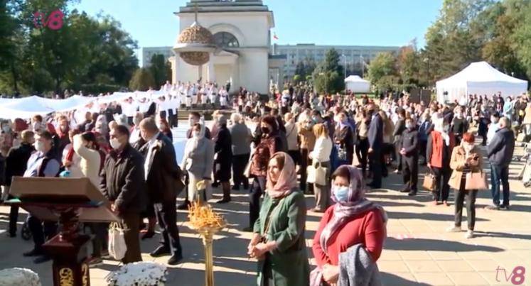 Sărbătoarea a început dis-de-dimineață, cu tradiționala slujbă la Catedrala Mitropolitană din Chișinău. Deși autoritățile anunțau că vor fi cel mult 50 de persoane, cifra celor prezenți a fost cu mult mai mare. Numai artiștii, prezenți la eveniment, depășeau limita maximă.