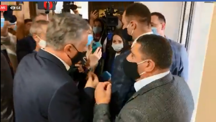 UPDATE. 15:45. Jurnaliștii arată că a fost ruptă o ușă în timpul îmbrâncelilor dintre deputați, jurnaliști și paza de stat.