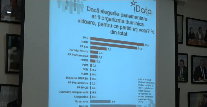 Astfel, pentru Partidul Acțiunea și Solidaritate ar vota 25 la sută din respondenți, pentru PSRM -21, 6%, iar pentru PP Șor – 7,1.