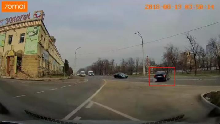 Momentul unui accident de circulaţie a fost surprins de o cameră de bord în această dimineaţă în preajma intersecției străzilor Albişoara cu Andrei Botezatu.