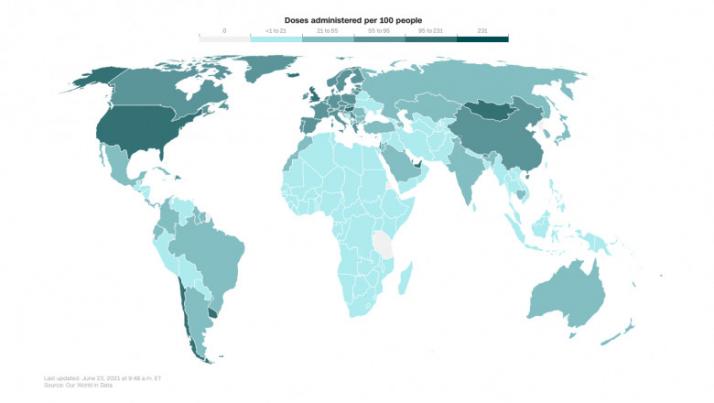 Cel puțin 212 de țări și teritorii au administrat până în prezent peste 2 miliarde de doze de vaccin împotriva SARS-CoV-2, la un an și jumătate după ce primul caz de COVID-19 a fost raportat în China. Mai multe tipuri de vaccinuri au fost dezvoltate într-o viteză record, în mare parte datorită anilor de cercetare asupra virusurilor asociate și a investițiilor de miliarde de dolari în cercetare. Cu toate acestea, numai 10% din populația lumii, adică aproximativ 782 de milioane de oameni, a fost complet imunizată prin vaccinare până în prezent, potrivit datelor Our World in Data, informează CNN.