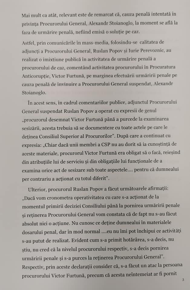 Potrivit acestuia, chiar dacă în acest moment cauza se află la faza de urmărire penală, nefiind emisă o soluție pe caz, cei doi procurori au realizat o imixtiune publică în activitatea de urmărire penală a procurorului de caz.