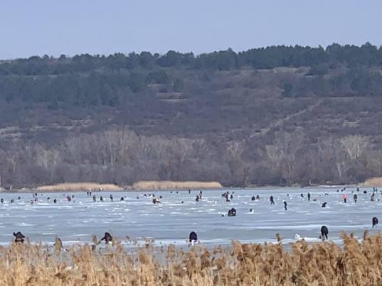 În pofida temperaturilor cu plus și a gheții fragile, pescarii au împânzit lacul de la Ghidighici. Zeci de iubitori de pescuit la copcă au fost surprinși astăzi pe toata suprafața bazinului acvatic. Peste 20 de polițiști și salvatori, aflați într-o inspecție, i-au îndemnat să părăsească lacul întrucât gheața acestuia nu depășește grosimea de 7 cm.