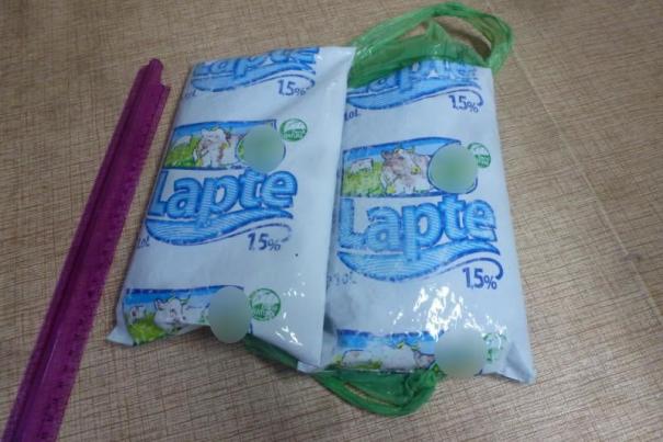 Băutură alcoolică era turnată în pungi din plastic, pe ambalaj fiind indicat că acestea conțin lapte de 1,5 %.