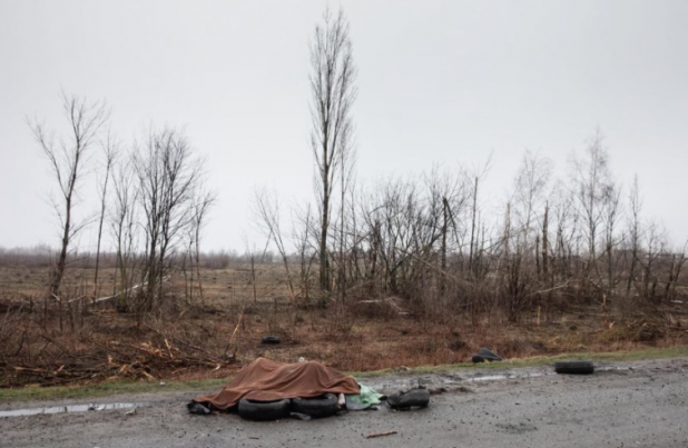 Civilii morți zăceau încă împrăștiați pe străzile orașului ucrainean de provincie Bucea sâmbătă, la trei zile după ce armata rusă invadatoare s-a retras din avansul său eșuat asupra Kievului, în sud-estul țării, notează alephnews.