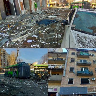 Doi oameni au murit, iar 16 au fost grav răniți. După ce racheta a căzut peste clădire, bucăți din aceasta au ajuns și pe o stradă din cartierul Kurenevka. O persoană a decedat, iar șase au fost rănite. Un troleibuz, care nu avea pasageri la bord, a fost distrus.
