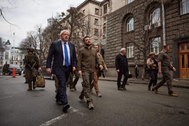 Vizita de sâmbătă, 9 aprilie, a premierul Marii Britanii, Boris Johnson, în Ucraina a fost una neanunțată și i-a luat prin surprindere chiar și pe ucraineni. Pe vreme de război, cei doi oficiali - Boris Johnson și Volodimir Zelenski, au făcut o plimbare prin centrul orașului Kiev.