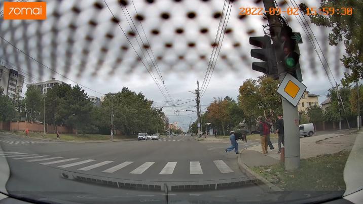 Potrivit unei martore, care a publicat pe Facebook imaginile surprinse de camera de bord, incidentul s-a produs vineri, 2 septembrie, la intersecția străzilor Alba Iulia și O. Ghibu.