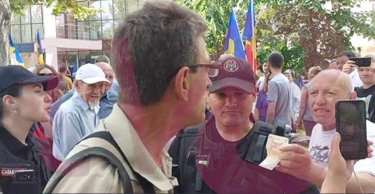 „Cât ți-au dat? 200 de lei. Ia de aici bani”, a spus un susținător al luo Dodon în timp ce i-a întins bărbatului o bancnotă de 50 de lei.