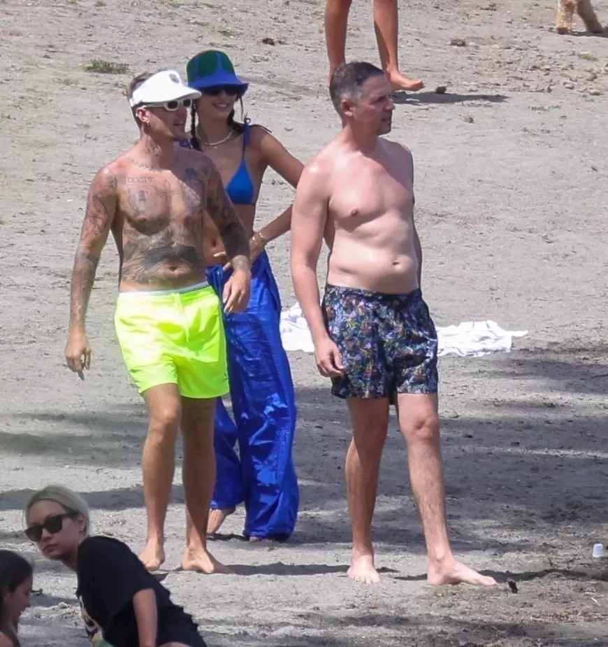 Bieber este în vacanță, alături de soția sa Hailey, în vârstă de 25 de ani. Cei doi se află în Coeur d’Alene, Idaho, și par să se distreze de minune la plajă. Artistul poartă pantaloni de baie galben-strălucitor, are ochelari de soare retro și schițează un zâmbet pe sub șepcuța care îl protejează de razele puternice.