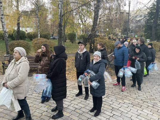 În Kiev, iluminatul stradal a fost oprit, iar troleibuzele au fost înlocuite cu autobuze convenţionale. Cozi lungi au fost observate în tot oraşul, locuitorii făcând cozi pentru a colecta apă de la pompe, după ce propriile rezerve au fost întrerupte. Se spune că până la 80% dintre consumatorii din Kiev au rămas fără apă curentă imediat după atacuri. Ulterior, Zelensky a declarat în discursul său de seară că se lucrează în continuare la reconectarea gospodăriilor la serviciile de alimentare