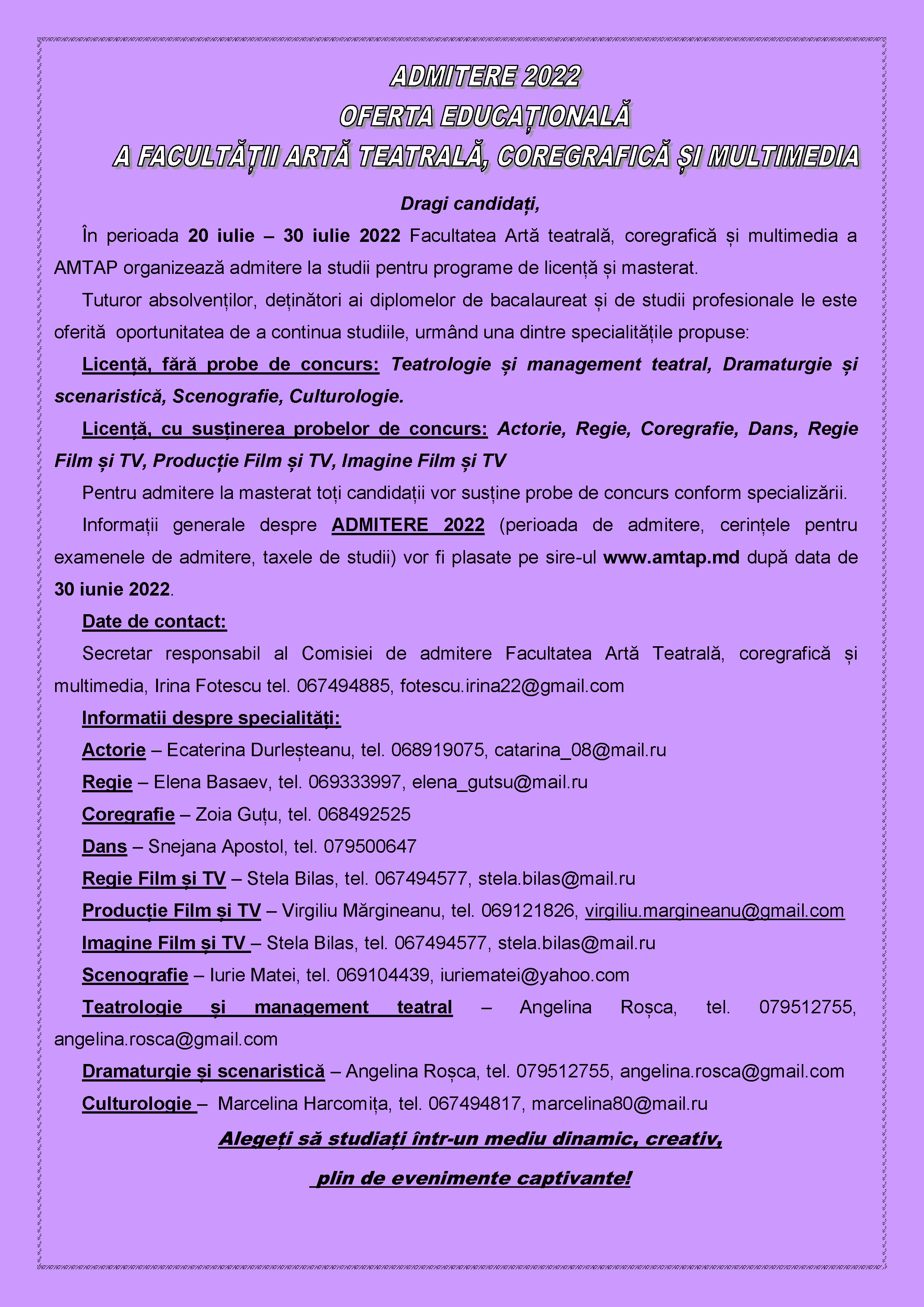Facultatea Artă Teatrală, Coregrafică și Multimedia