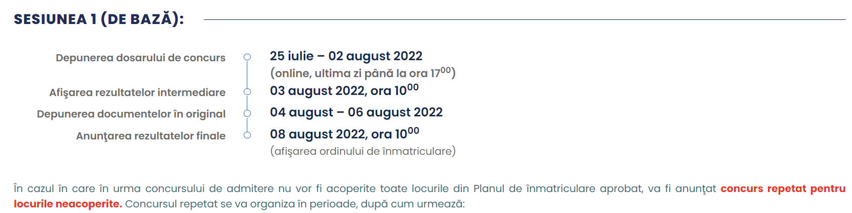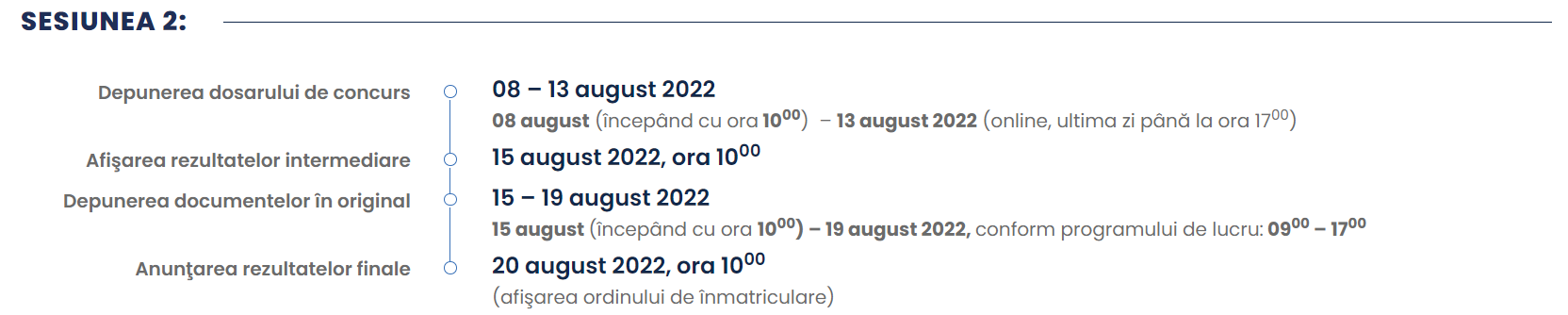 - Depunerea dosarului de concurs: 25 iulie – 2 august 2022