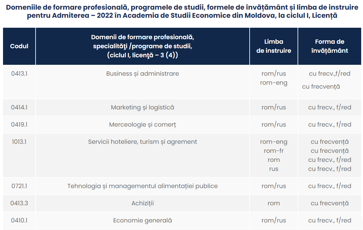 oferta educațională licență: Specialitati – Admitere 2022 (usm.md)