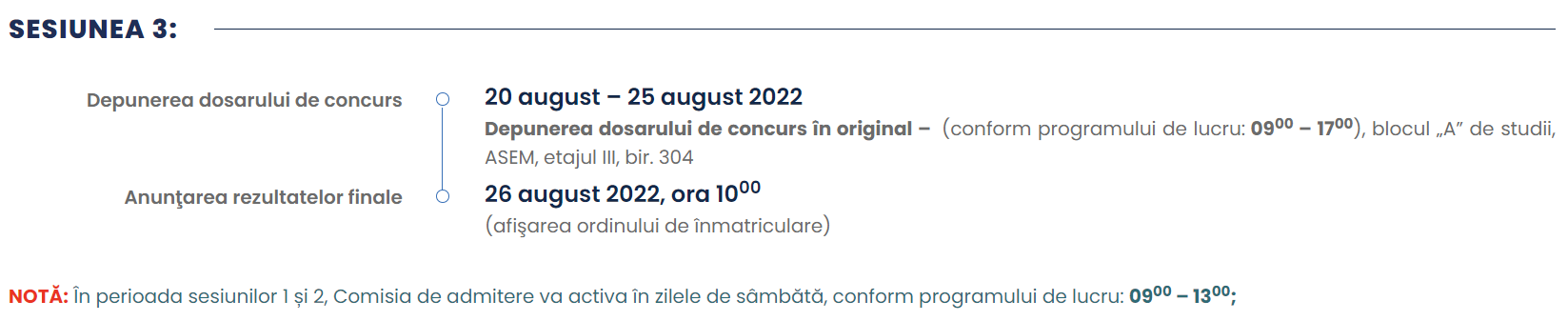 - cererea de înscriere la concursul de admitere (model aprobat de Senatul ASEM);