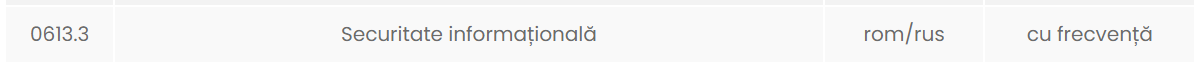 - 0613.3 „Ingineria software” (Filiera anglofonă) cu predare în limba engleză