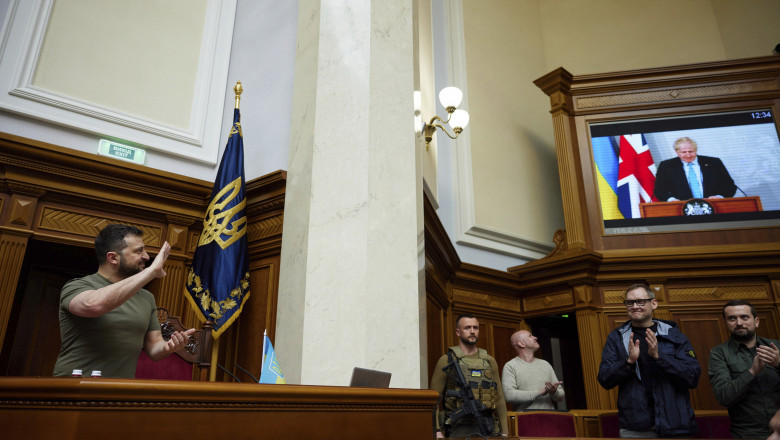 Johnson a amintit apelul telefonic al lui Zelenski din 24 februarie, prin care a primit confirmarea că „a izbucnit nebunia”, iar tancurile ruseşti „năvălesc peste graniţă”.
