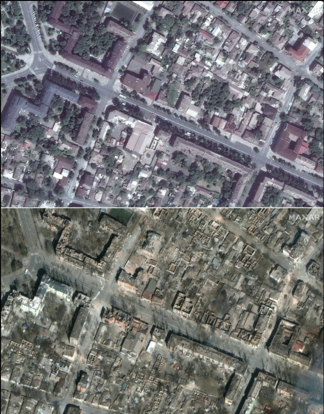 Blocuri întregi din centrul orașului Mariupol au fost distruse de bombardamentele rusești. Noi imagini din satelit arată amploarea dezastrului din orașul asediat de forțele Moscovei, relatează CNN și digi24.