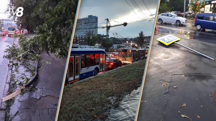 Circulația a fost blocată. Mașinile și troleibuzele au format cozi din cauza furtunii.