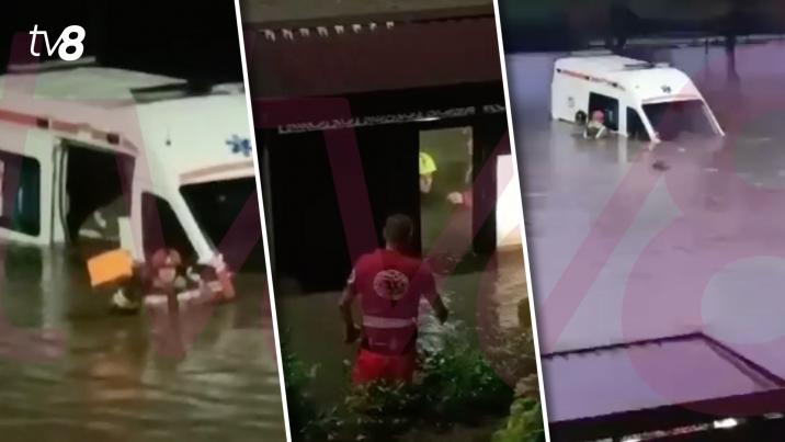 Strada Albișoara din Capitală s-a transformat într-un adevărat râu din cauza ploilor puternice din această seară. O ambulanță cu trei medici în ea a fost cuprinsă de ape.