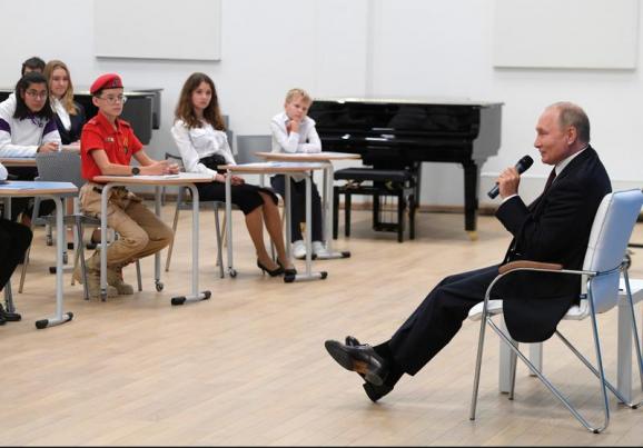 În timpul ședinței din Kalinigrad, liderul de la Kremlin a subliniat în fața copiilor cu vârste între 9 și 12 ani importanța istoriei, evident versiunea aprobată de Kremlin, în care Ucraina este o „enclavă antirusească”.