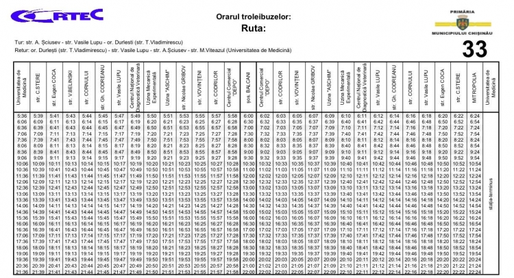 De marți, 4 octombrie 2022, va fi deschisă linia de troleibuz nr. 33 „or. Durlești: str. Codrilor - str. Henri Coandă”. Potrivit Primăriei municipiului Chișinău, noua rută de troleibuz va deservi cu transport public locuitorii or. Durlești.