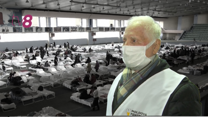 Bărbatul din imagine este Petru Sclifos. Acum - voluntar la centrul de plasament, amenajat la Manejul de Atletică Ușoară din capitală. Toată viața a fost profesor, iar de curând a împlinit 84 de ani. Ne-a povestit că, pe când avea doar șase ani, a început cel de-al doilea Război Mondial.