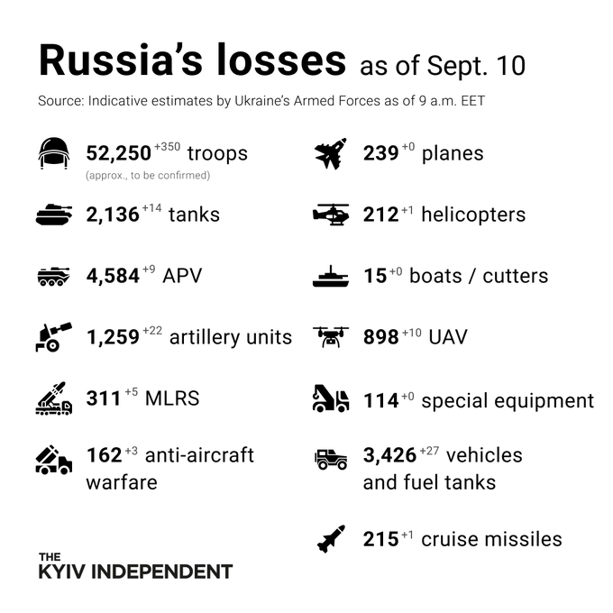 UPDATE Potrivit armatei ucrainene, armata rusă a pierdut în ultima zi 350 de soldați, 14 tancuri, 9 transportoare blindate, 22 de piese de artilerie, 5 lansatoare multiple de rachete, 3 sisteme antiaeriene, 1 elicopter, 10 drone și 27 de vehicule și autocisterne, iar 1 rachetă de croazieră a fost doborâtă înainte să-și atingă ținta.