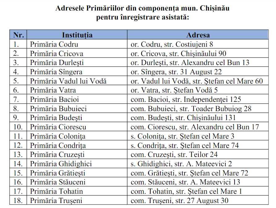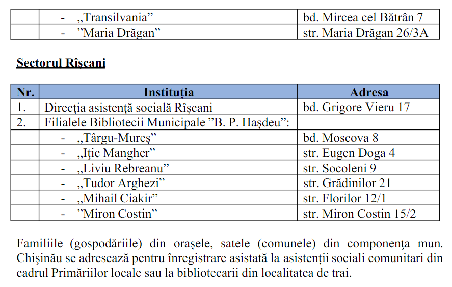 Familiile (gospodăriile) din orașele, satele (comunele) din componenţa mun. Chişinău se adresează pentru înregistrare asistată la asistenții sociali comunitari din cadrul Primăriilor locale sau la bibliotecarii din localitatea de trai.