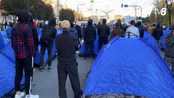 Pe bulevardul Ștefan cel Mare și Sfânt au fost instalate mai multe corturi, toate albastre. Întrebați dacă vor bloca strada din nou, unii protestatari au preferat să tacă, iar unul din ei a spus că va rămâne să doarmă în cort.