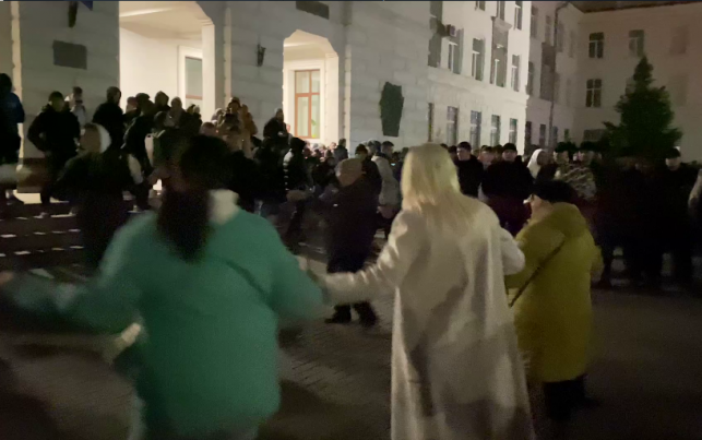 Zona din fața Procuraturii Generale s-a transformat într-un ring de dans și un grup de protestatari au încins o horă.